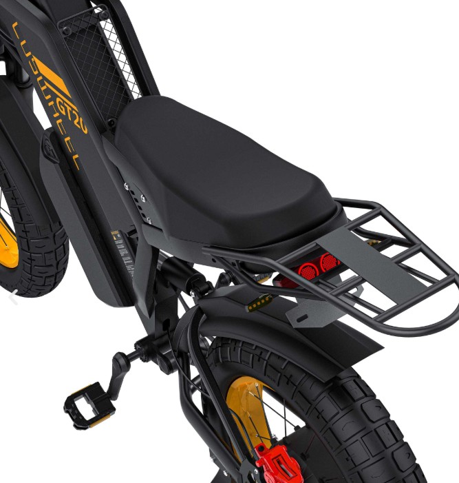 GT20 MAX is an upgraded version of GT20. The motor is upgraded from peak 1500W (rated 1000W) to peak 2000W (rated 1500W), and the battery is upgraded to Samsung battery 25AH+15AH. The cruising range can reach 145 miles (233km) (accelerator + pedal assist), and the maximum speed can reach 40mph (65km/h)