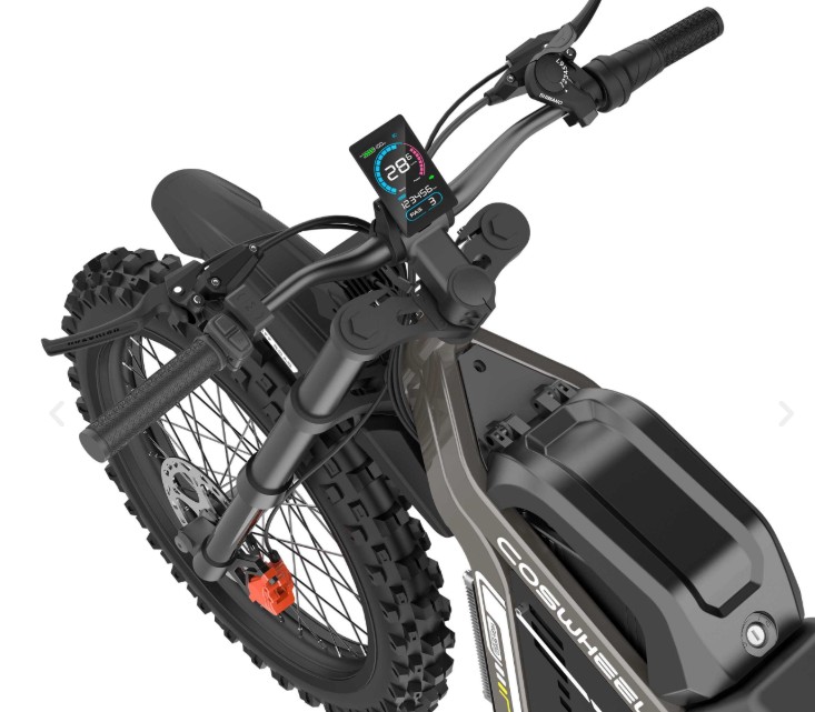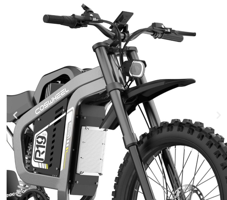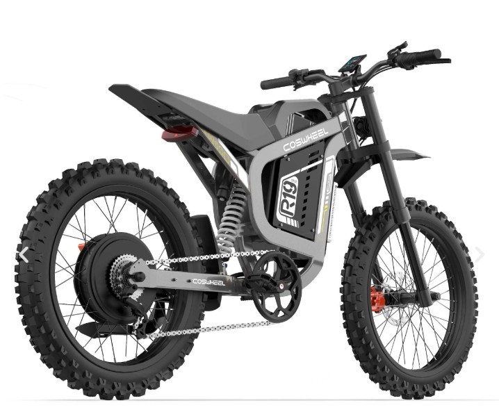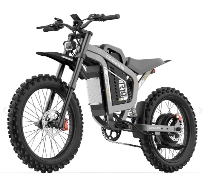 R19 is a lightweight off-road electric motorcycle designed by COSWHEEL Bike. Motor peak 6000W (rated 3000W), 72V 40AH, torque 120Nm, max speed 80km/h.
